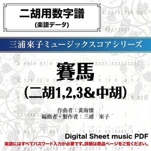 賽馬(二胡1,2,3&中胡)-二胡用数字譜- ダウンロード版 ※パスワード設定済[商品説明ページ要確認]