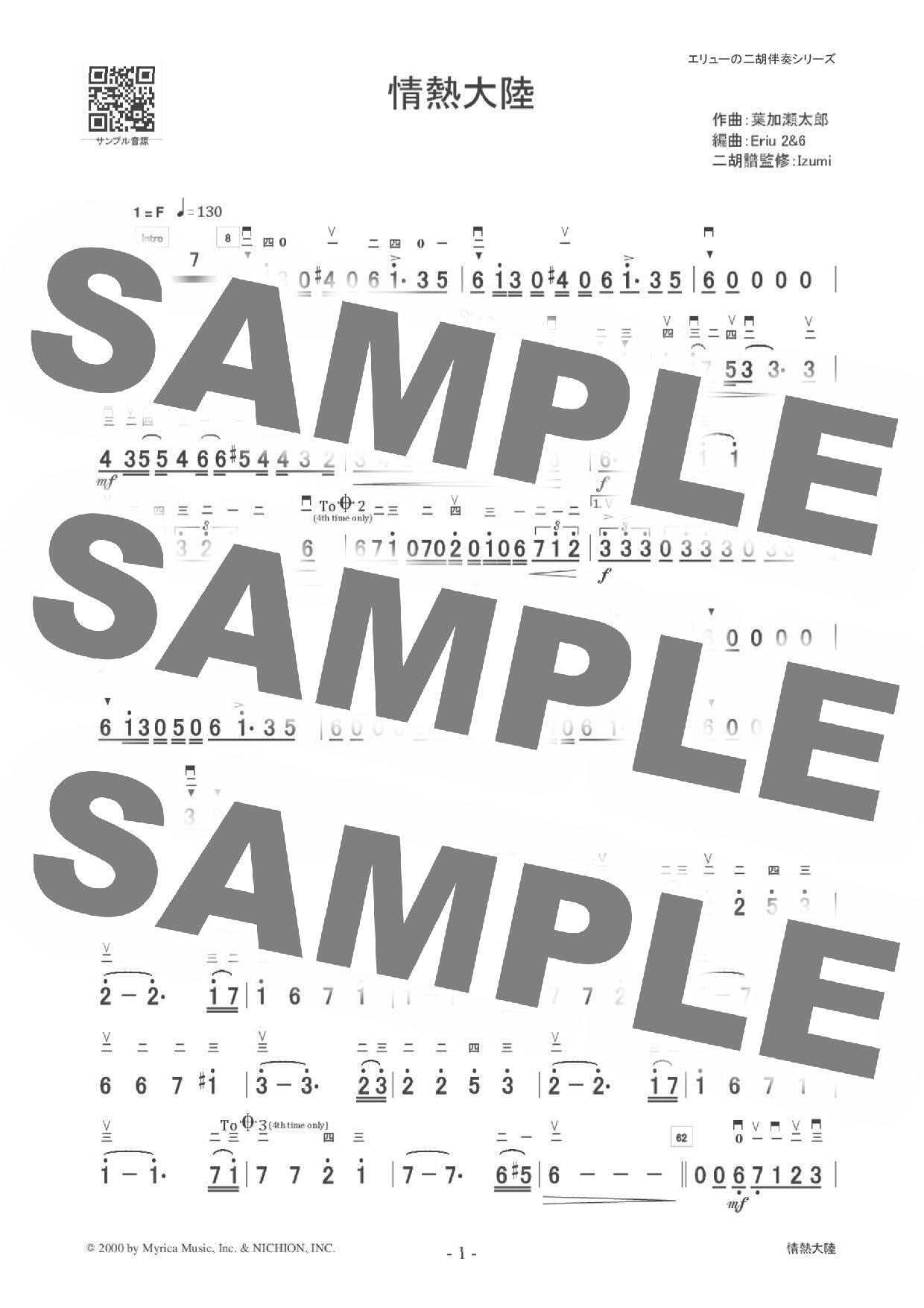 ご本人の構成に敬意を払いながらも、メロディ部分は二胡に合わせたオリジナルメロディを展開。まさに「あなた自身の情熱」を表現できる一曲です。