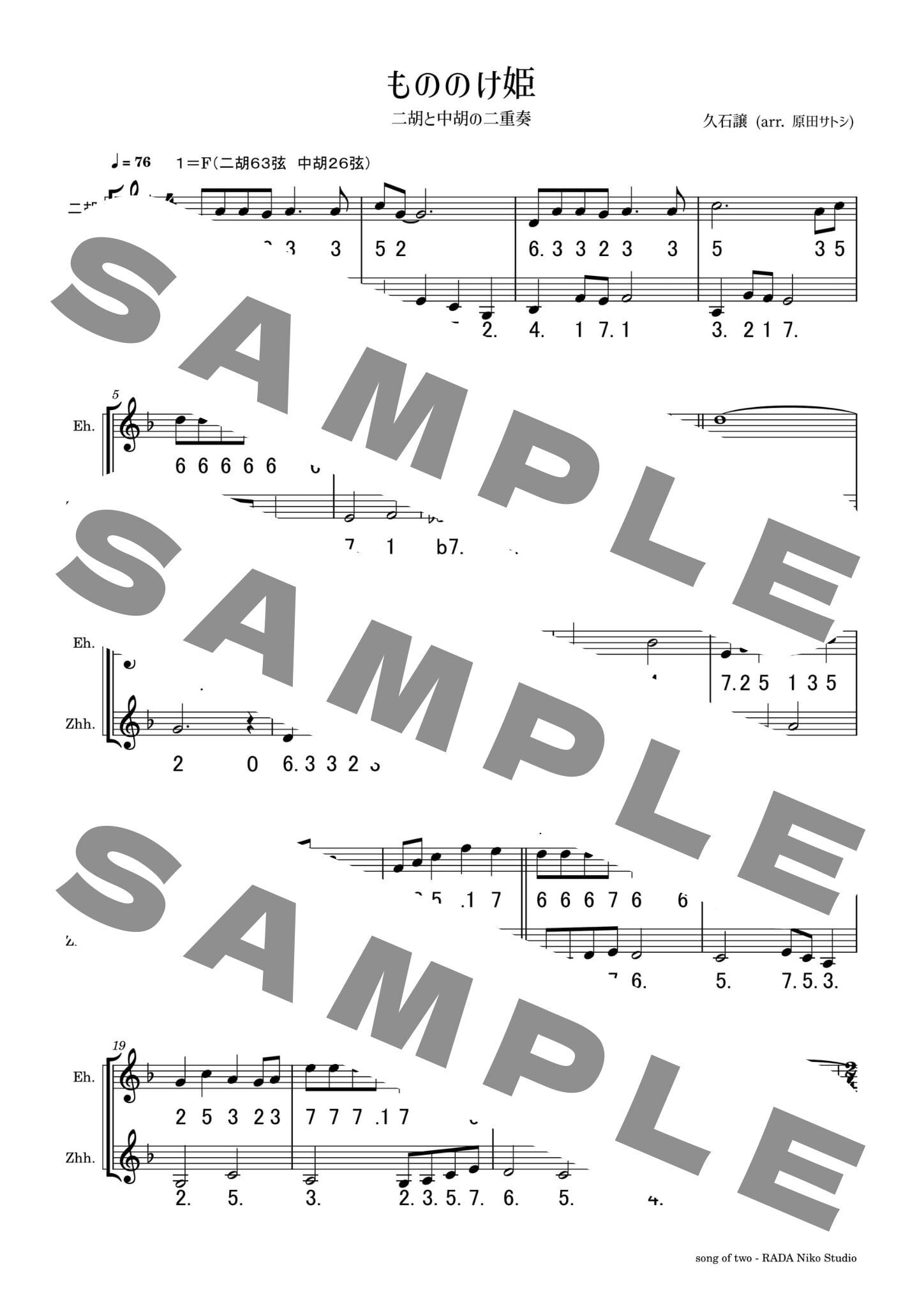 もののけ姫(二胡と中胡による二重奏)-楽譜- ダウンロード版 ※パスワード設定済[商品説明ページ要確認]