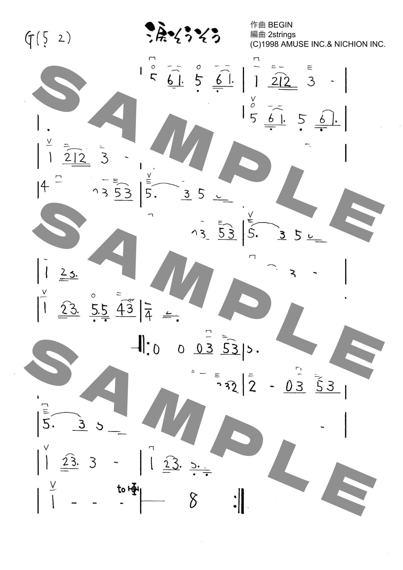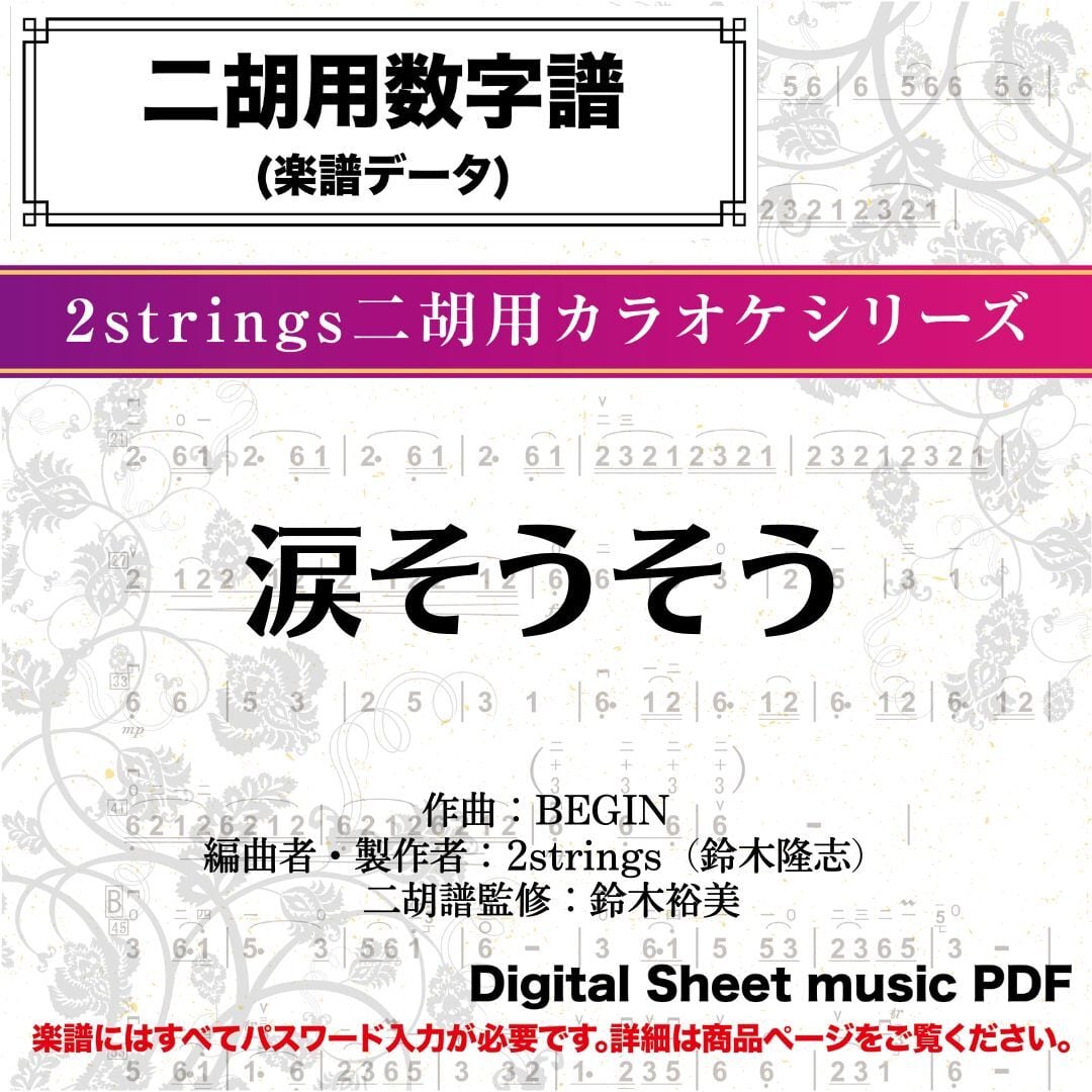涙そうそう/BEGIN -二胡数字譜- 〔二胡向け〕 ダウンロード版 ※パスワード設定済[商品説明ページ要確認]