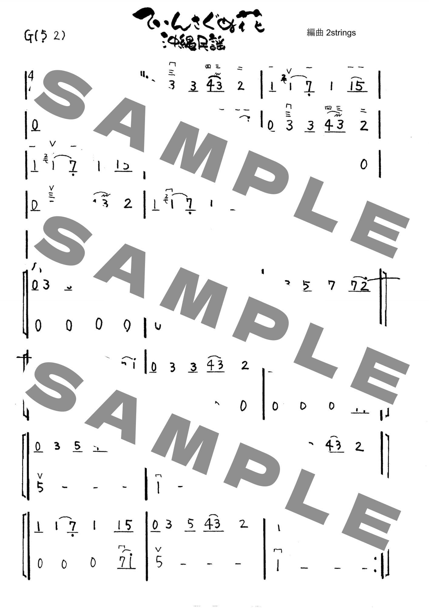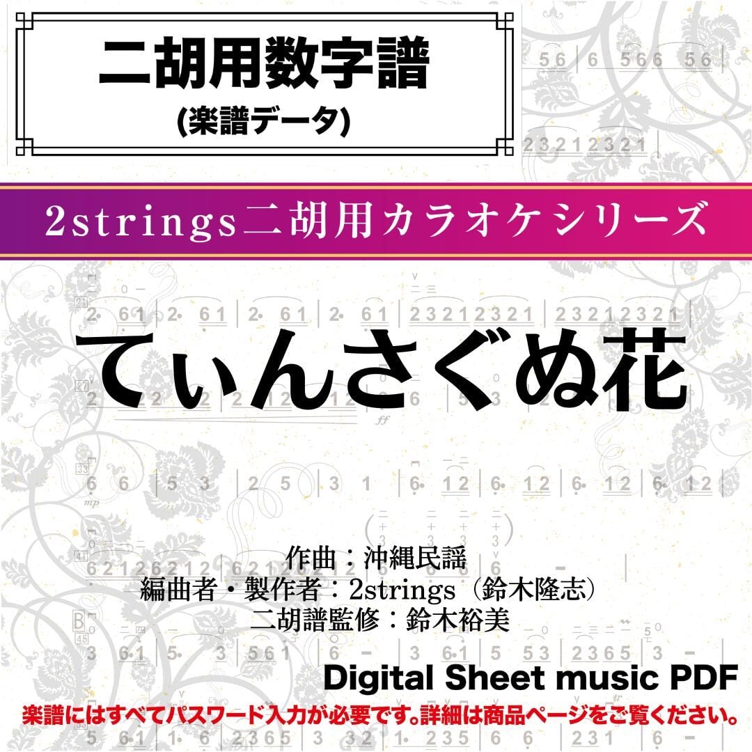 てぃんさぐぬ花/沖縄民謡-二胡数字譜- 〔二胡向け〕 ダウンロード版 ※パスワード設定済[商品説明ページ要確認]